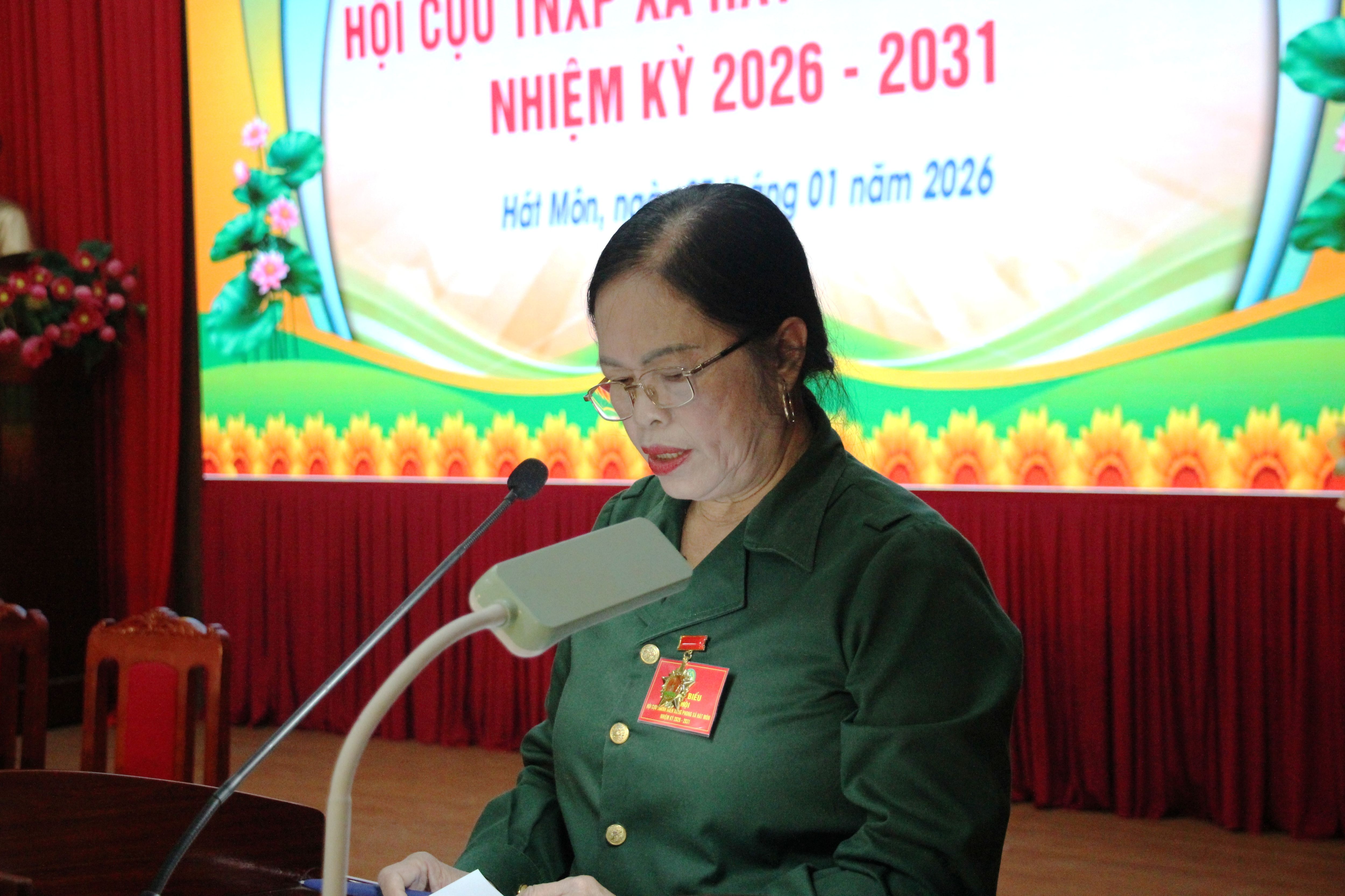 Thay mặt Đoàn Chủ tịch, đồng chí Kim Thị Huệ – Phó Chủ tịch lâm thời Hội Cựu TNXP xã Hát Môn đã trình bày Báo cáo tổng kết hoạt động và phương hướng, nhiệm vụ nhiệm kỳ 2026 – 2031.