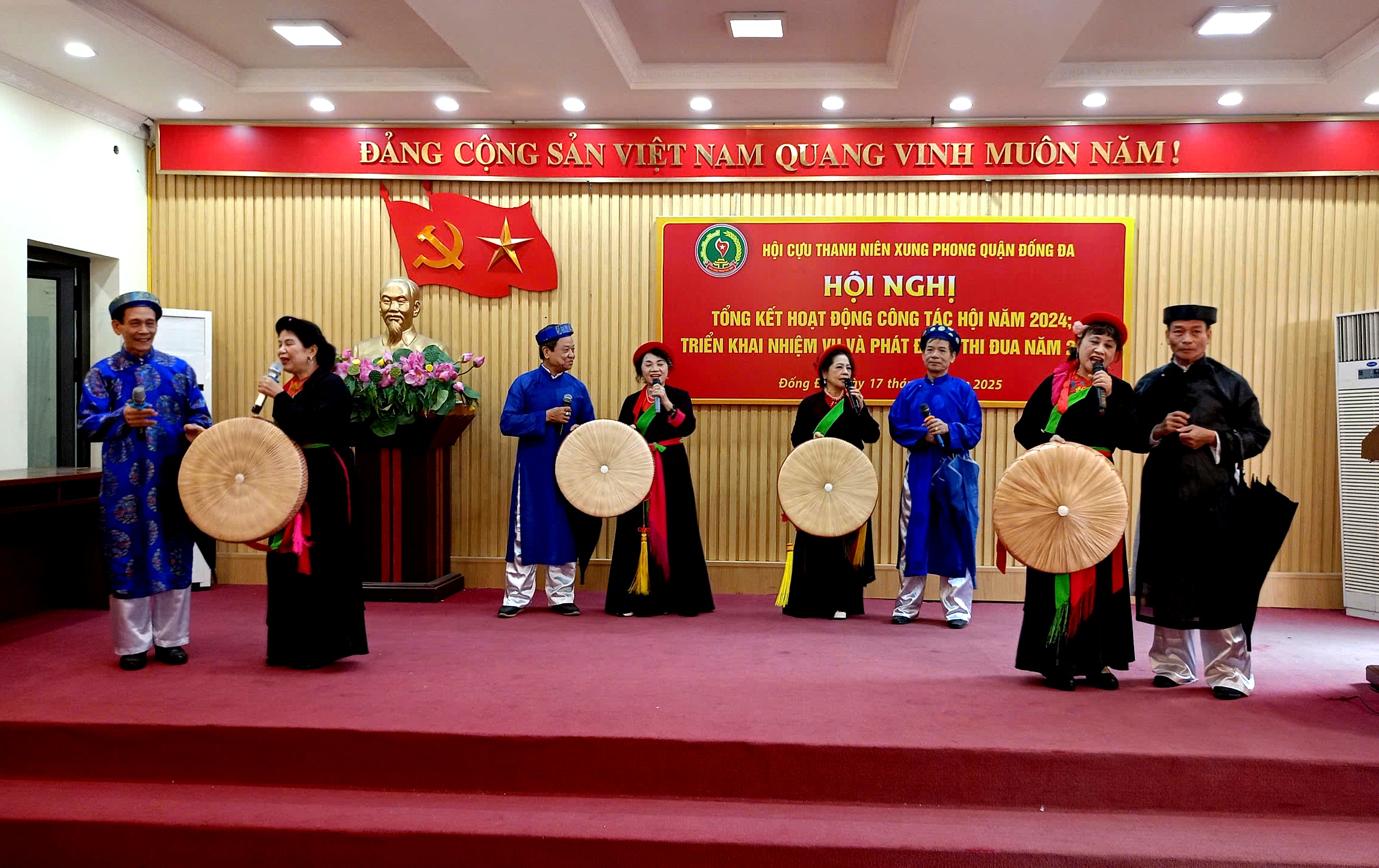 Hội nghị rất vui và khen ngợi khi được thưởng thức một chương trình văn nghệ rất đặc sắc, hấp dẫn chào mừng hội nghị của các cán bộ hội viên Hội cựu TNXP quận Đống Đa.