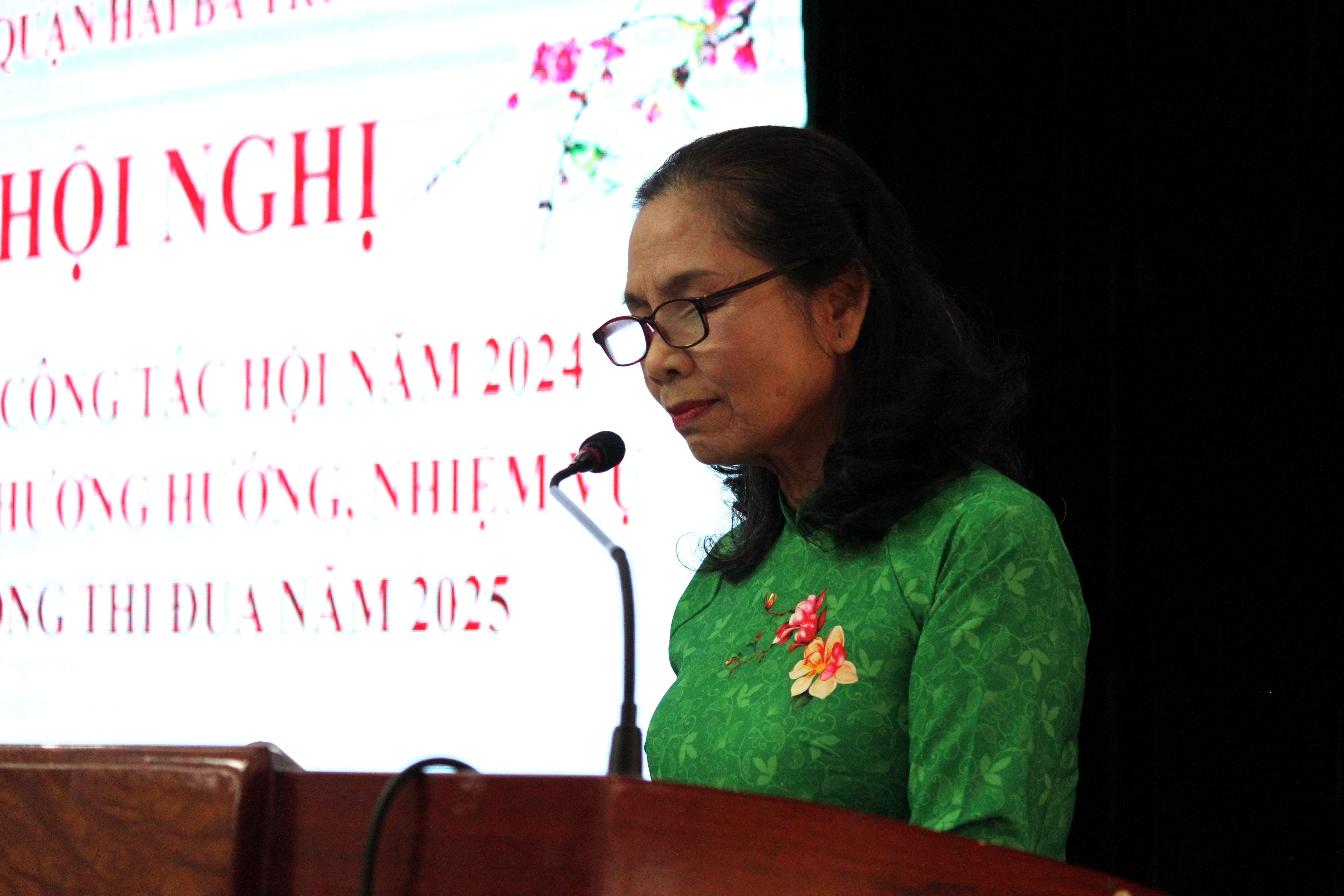 Hội nghị đã nghe bà Hoàng Thị Thới - Chủ tịch Họi cựu TNXP quận trình bày báo cáo tổng kết công tác hội năm 2024, triển khai phương hướng nhiệm vụ và phát động thi đua năm 2025. Nổi bật những vấn đề sau: