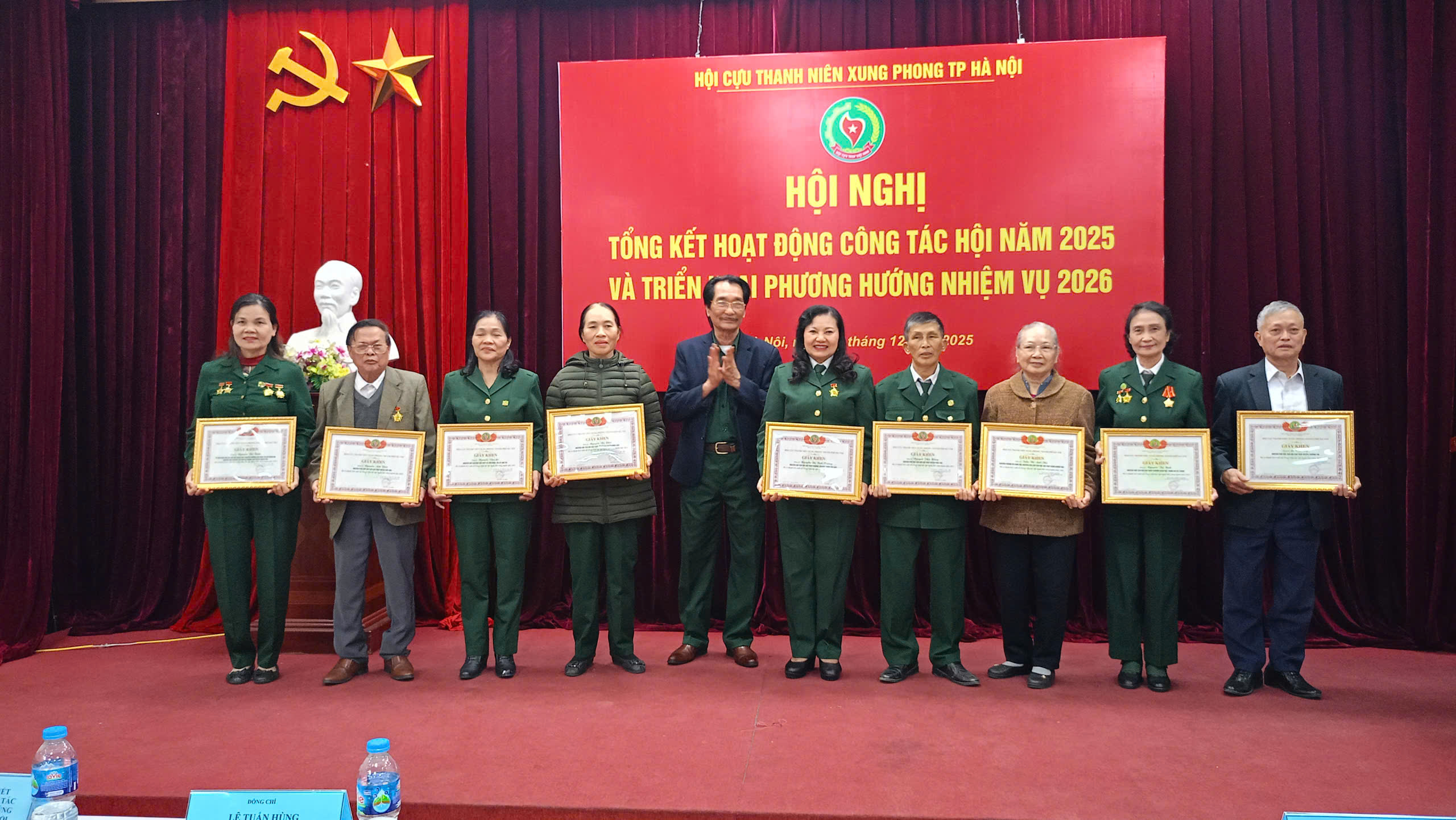 Taị Hội Nghị Trung ương Hội Cựu TNXP Việt Nam đã trao tặng Bằng khen và Hội Cựu TNXP Thành phố Hà Nội cũng trao tặng Giấy khen cho các tập thể và cá nhân có thành tích xuất sắc trong năm 2025.