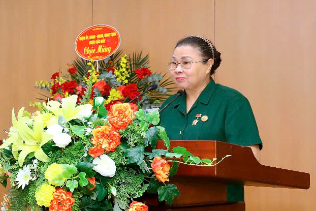 Đồng chí Lê Thị Hồi - Chủ tịch Hội Cựu TNXP quận Cầu Giấy trình bày diễn văn kỷ niệm và tổng kết nhiệm kỳ IV