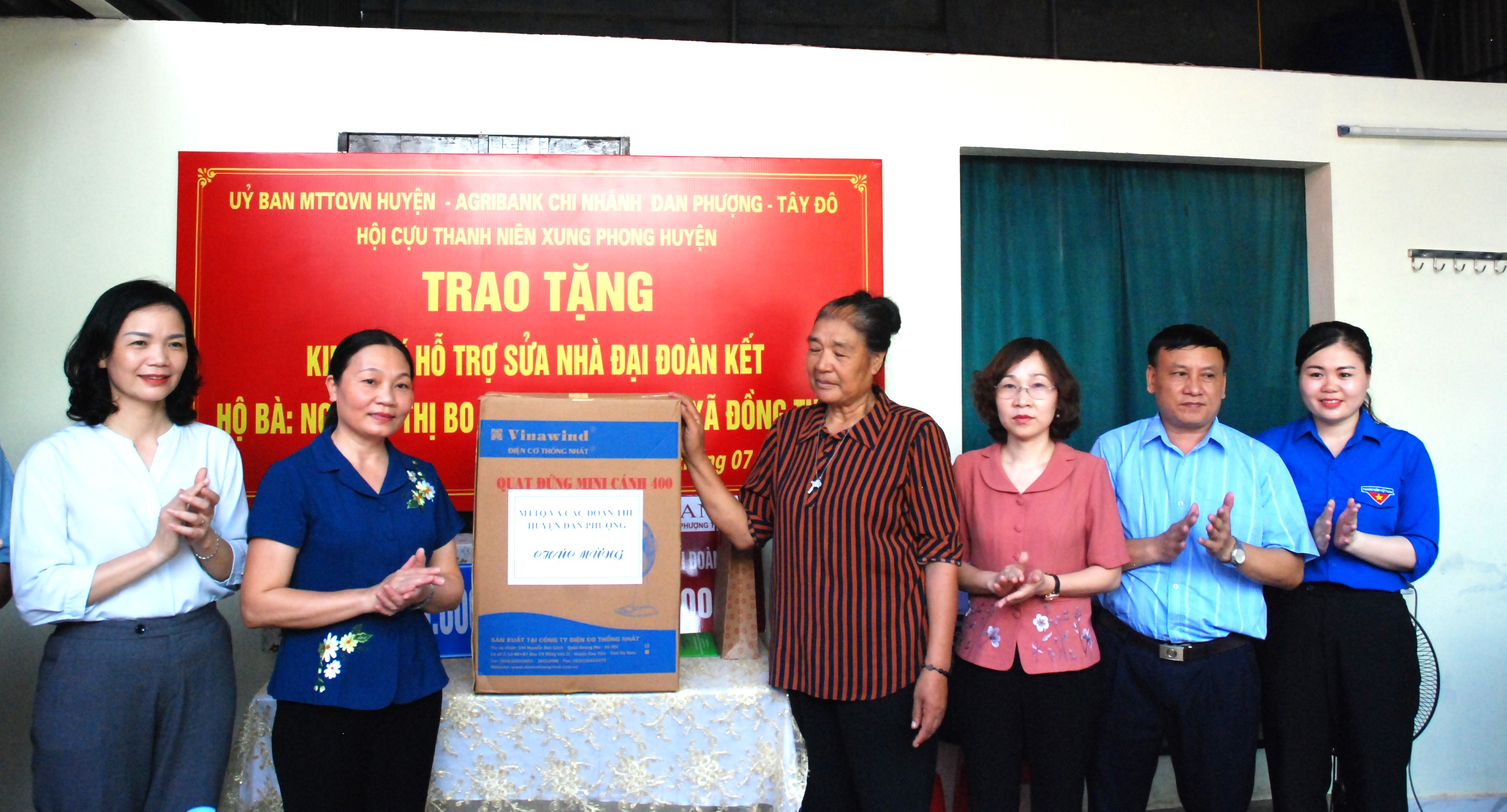 Lãnh đạo Uỷ ban MTTQ Huyện Đan Phượng tặng quà tại buổi lễ
