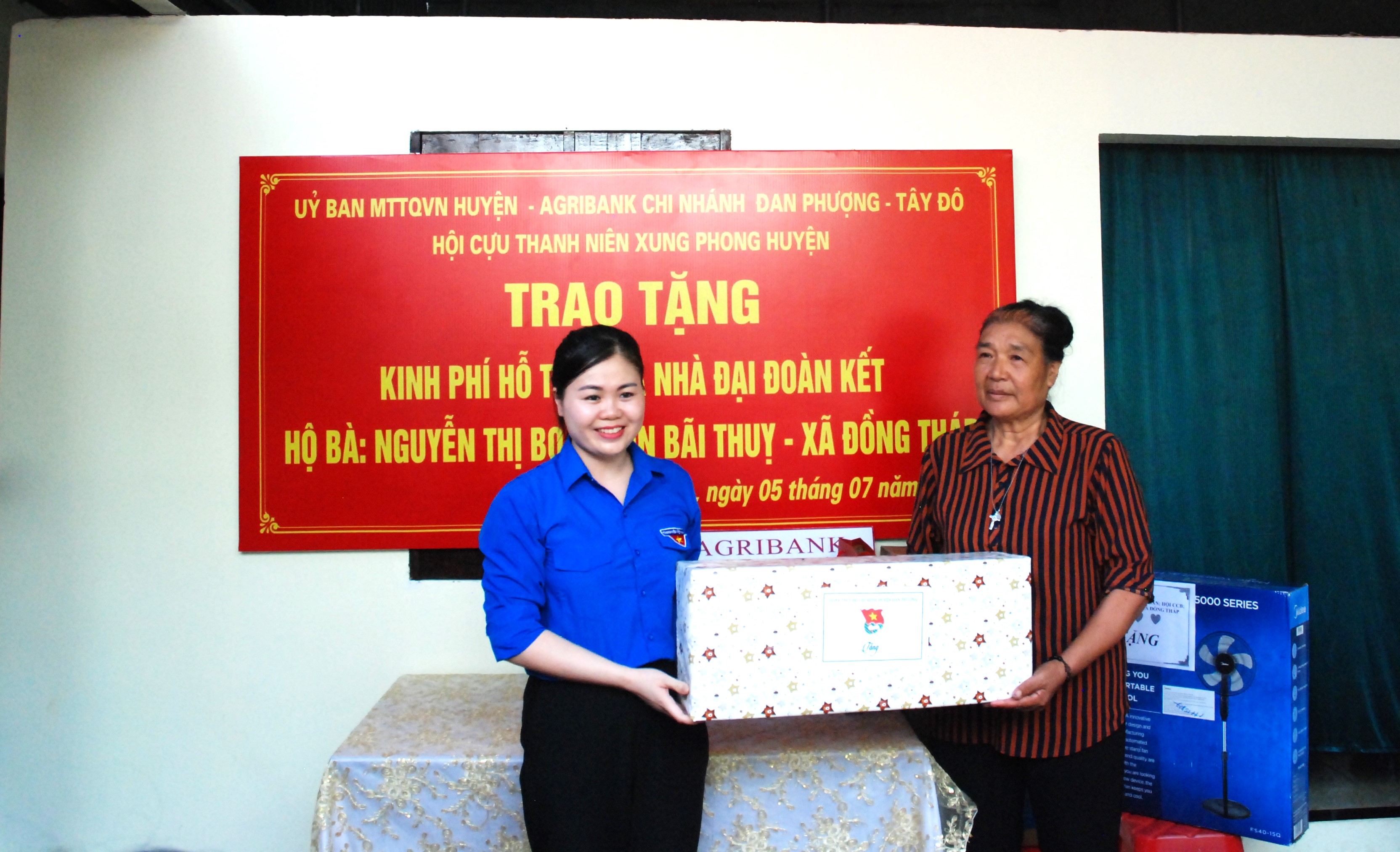 Sáng 5/7, tại xã Đồng Tháp, huyện Đan Phượng, Hà Nội, đại diện lãnh đạo Hội cựu TNXP Thành phố Hà Nội cùng phối hợp với ủy ban MTTQ huyện Đan Phượng, Ngân hàng Agribank và UBND xã Đồng Tháp và nhân dân xóm Giáo đã tổ chức lễ bàn giao kinh phí hỗ trợ xây căn nhà đại đoàn kết cho cựu thanh niên xung phong Nguyễn Thị Bo cựu TNXP huyện Đan Phượng.