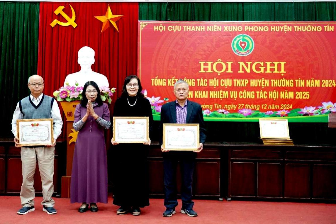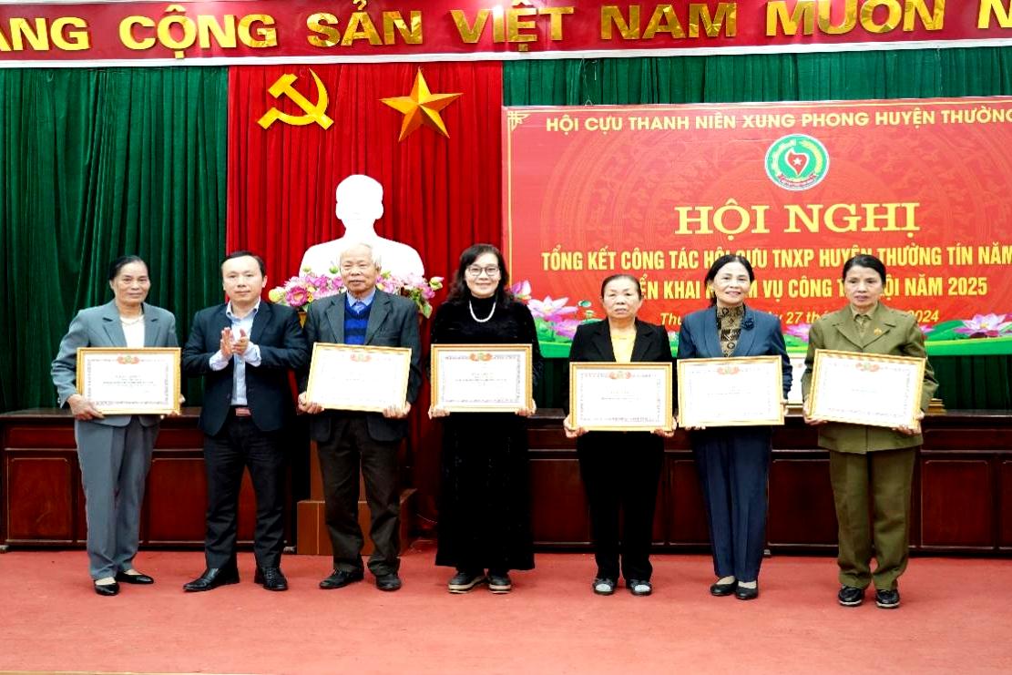 Tại hội nghị, đồng chí Đỗ Văn Thành trao tặng Giấy khen của Hội cựu TNXP Thành phố Hà Nội cho 4 tập thể, 7 cá nhân; Hội cựu TNXP huyện tặng Giấy khen cho 3 tập thể và 6 cá nhân có thành tích xuất sắc trong công tác Hội năm 2024.
