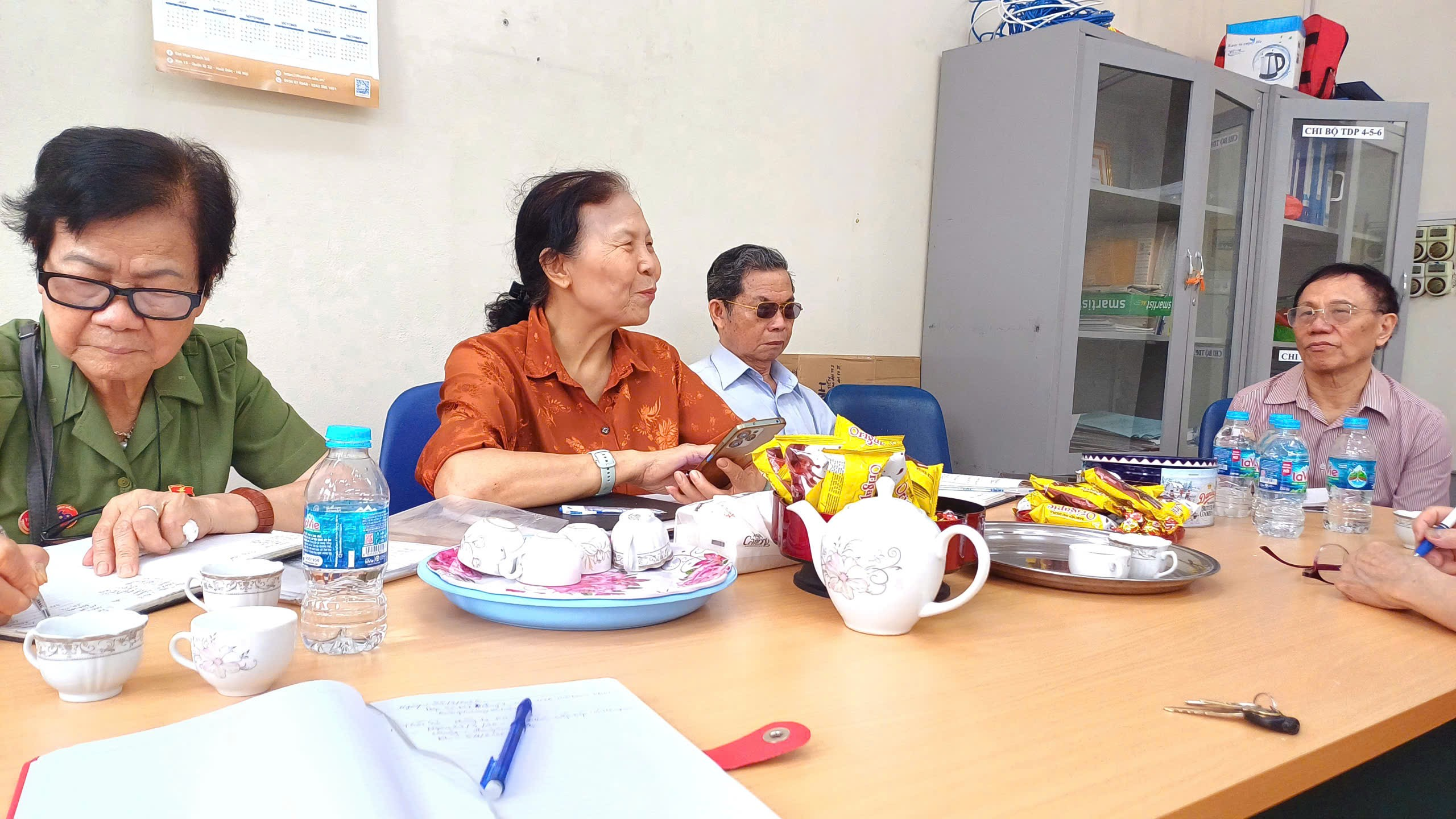Đồng chí Nguyễn Thị Mai Hiên – Chủ tịch Hội (áo hồng), đang lắng nghe các Uỷ viên BCH phát biểu ý kiến