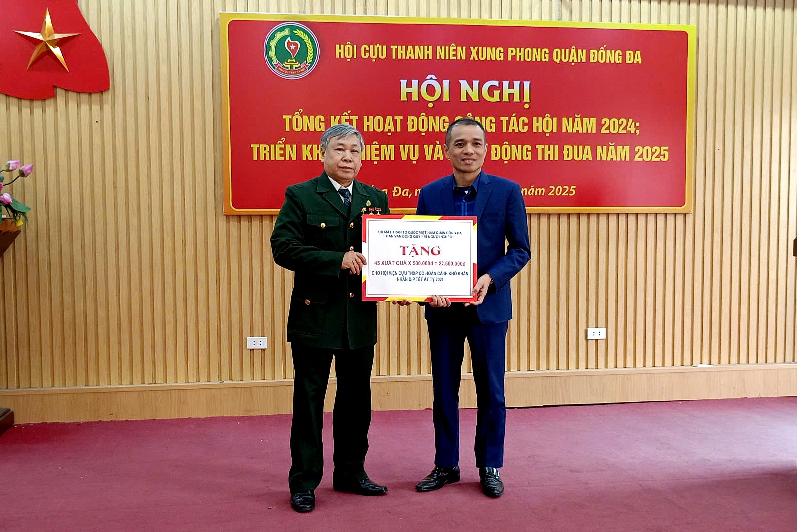 Cũng tại hội nghị, UBMTTQVN quận Đống Đa đã gửi tói Hội cựu TNXP Đóng Đa 45 suất quà tết để trao cho các hội viên cựu TNXP có hoàn cảnh khó khăn.
