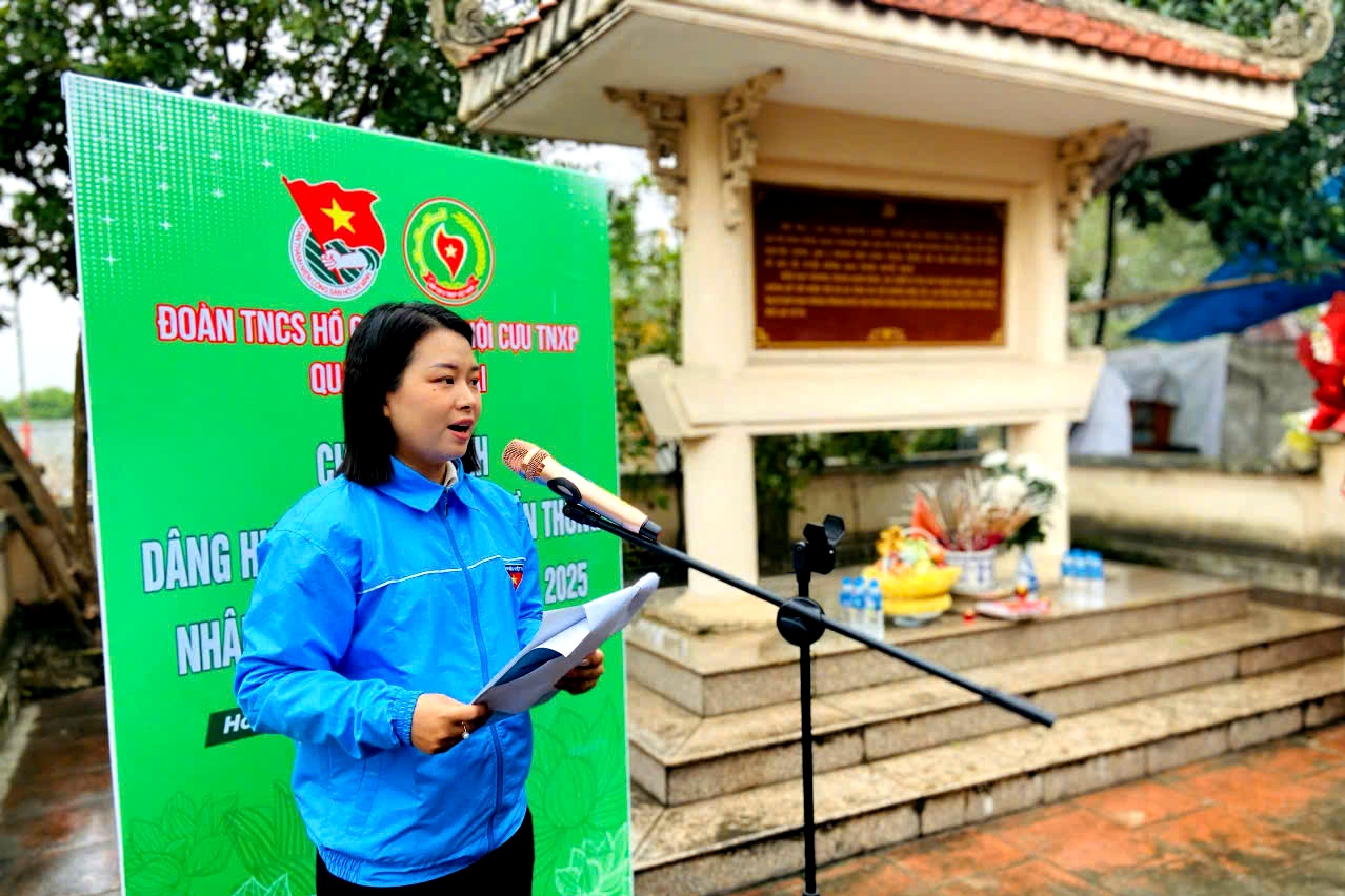 Đồng chí Nguyễn Quỳnh Trang - UVTV Thành Đoàn, quận ủy viên, Bí thư quận Đoàn Hoàng Mai khai mạc lễ dâng hương và phát động phong trào tết trồng cây "Đời đời nhớ ơn Bác Hồ"
