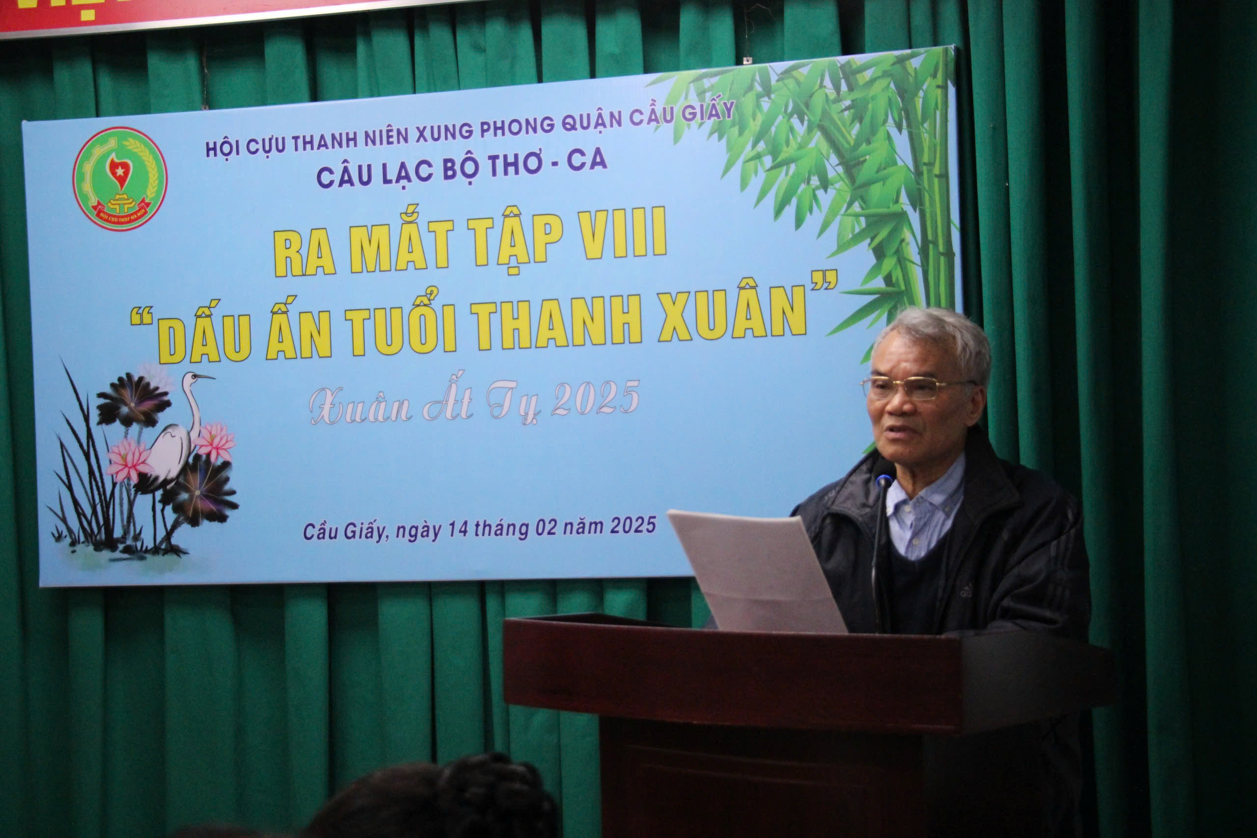 Đồng chí Trà Lý - Chủ nhiệm câu lạc bộ thơ ca cựu TNXP quận Cầu Giấy đã trịnh trọng giới thiệu tập VIII “Dấu ấn tuổi thanh xuân”.