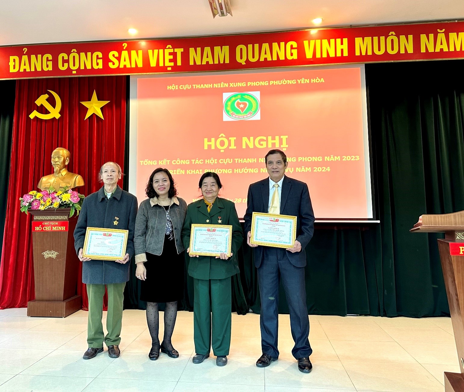 Tại Hội nghị, 01 giấy khen của Thành Hội cựu TNXP; 02 giấy khen của UBND quận Cầu Giấy; 04 giấy khen của Hội cựu TNXP quận Cầu Giấy được trao tặng cho Tập thể Hội cựu TNXP phường, chi hội 4 và các cá nhân có thành tích xuất sắc công tác hội năm 2023. Hội cựu TNXP phường đã biểu dương 01 tập thể và 07 cá nhân hoàn thành tốt nhiệm vụ công tác Hội.