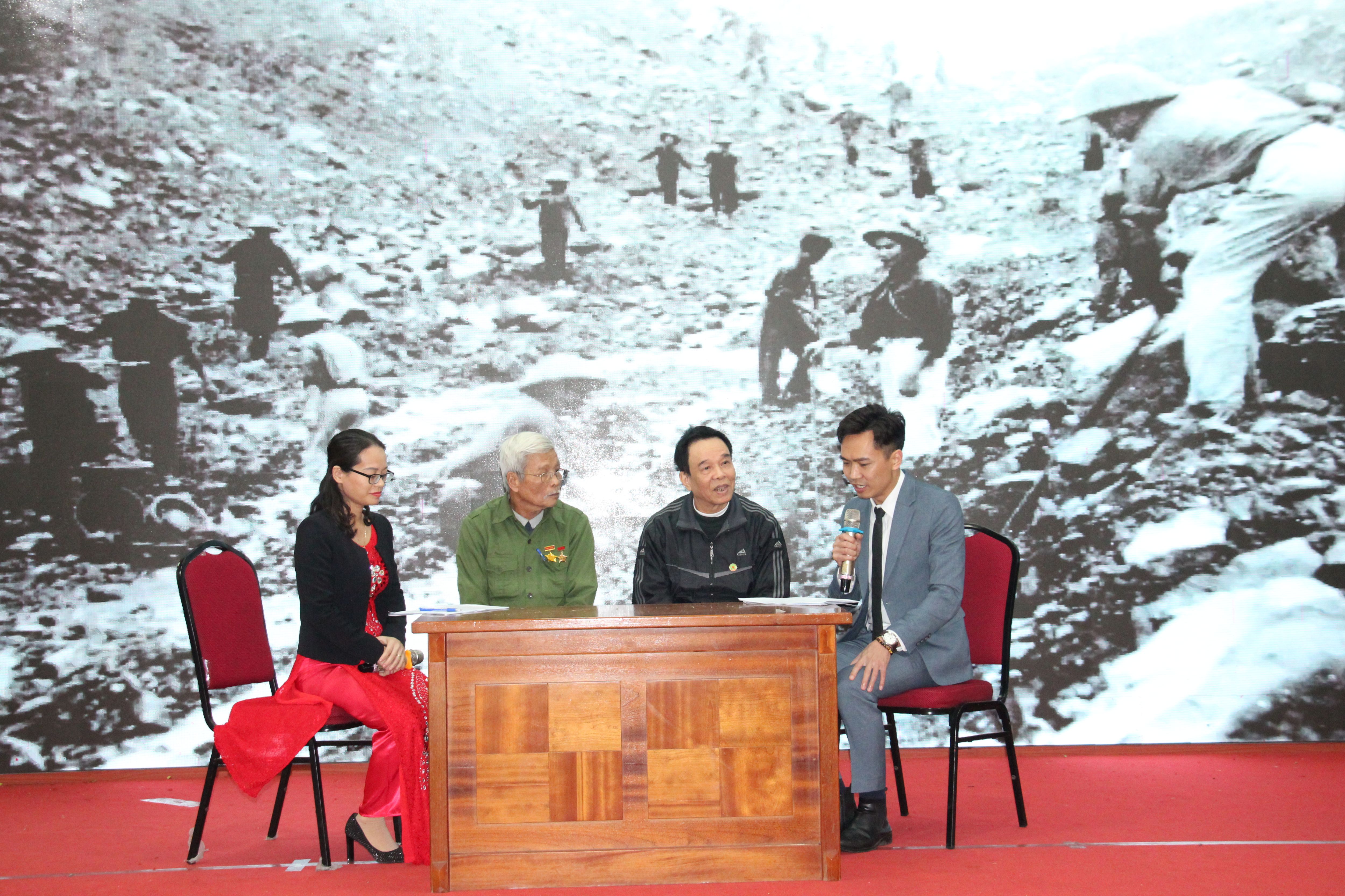 Chương trình cũng đã dành một thời lượng đáng kể để tọa đàm, giao lưu trực tiếp với các Cựu TNXP ( đ/c Trương Văn Đức, hội viên Cựu TNXP phường Trung Hòa và đ/c Hà Tiến Mạnh, hội viên Cựu TNXP phường Nghĩa tân). Những câu chuyện, những kỷ niệm sâu sắc về những năm tháng tham gia chiến đấu, phục vụ chiến đấu vô cùng gian khổ và ác liệt trong Lực lượng TNXP trên những cung đường (21,22, Ngã ba Thình Thình), trong công cuộc xây dựng những công trình trọng điểm của quốc gia (Sân bay quân sự Sao Vàng) … những nhân chứng lịch sử kể lại thật xúc động và cảm phục.