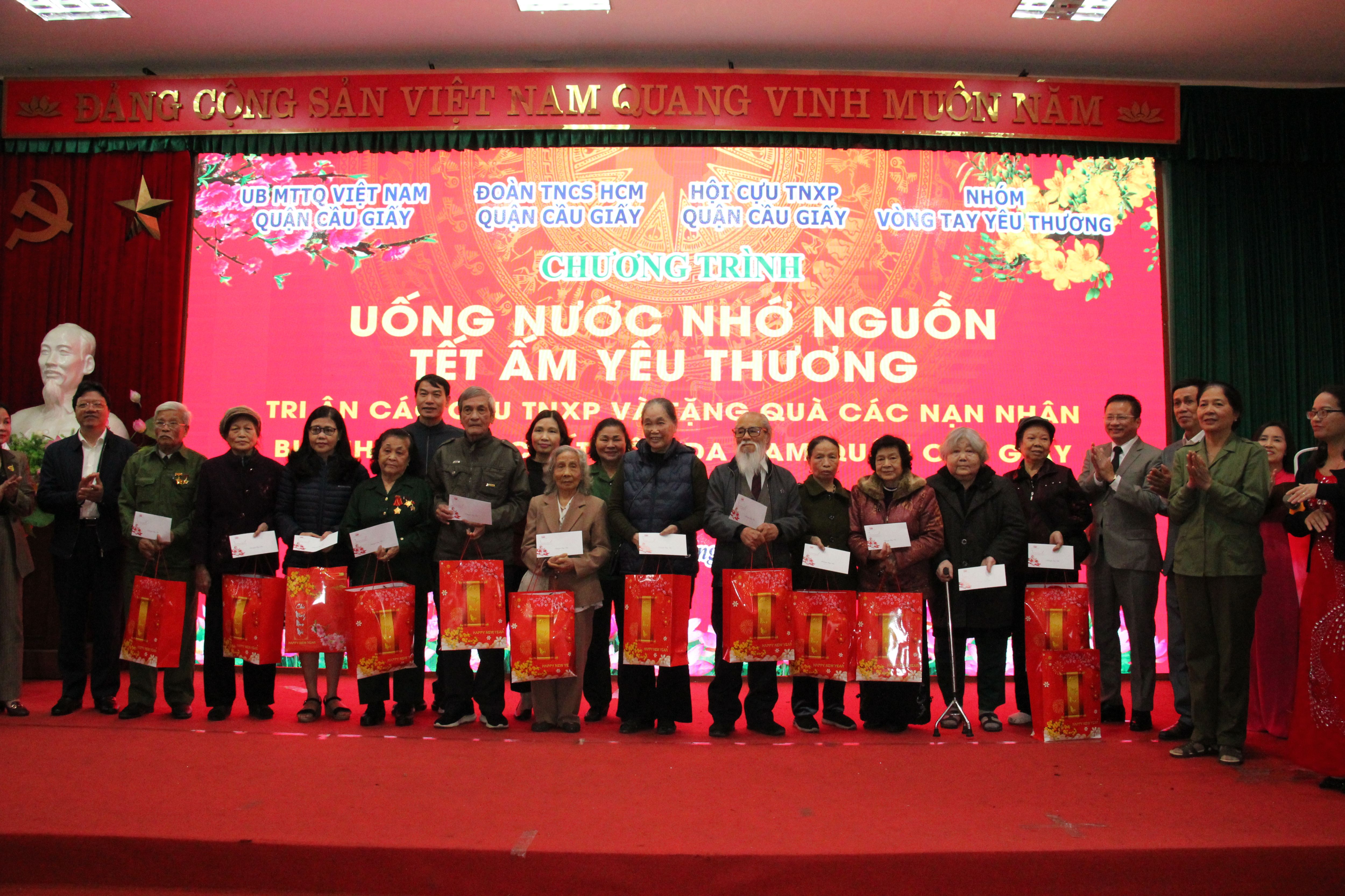 Chương trình Uống nước nhớ nguồn-Tết ấm yêu thương “Tri ân các cựu TNXP và tặng quà các nạn nhân bị ảnh hưởng bởi chất độc màu da cam quận Cầu Giấy, xuân Giáp Thìn 2024” đã kết thúc thành công, tất cả mọi người cùng nắm tay nhau hát vang bài ca “Nối vòng tay lớn”.