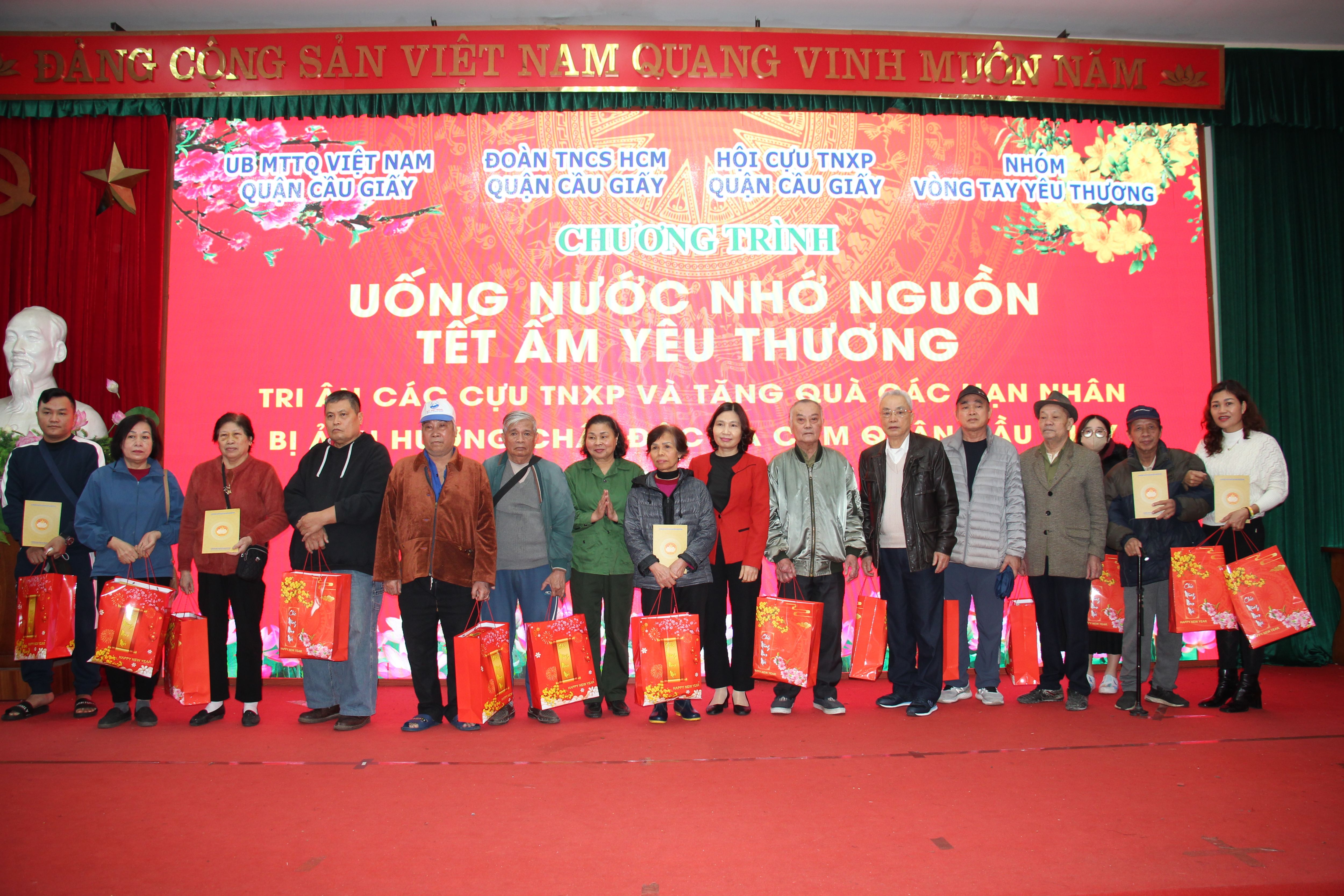Cũng tại Chương trình, UB MTTQ VN Quận Cầu Giấy đã trao tặng 50 suất quà, bao gồm 20 suất quà trao tới các Cựu TNXP và 30 suất quà trao tới các nạn nhân bị ảnh hưởng bởi chất độc màu da cam. Tổng trị giá 50 suất quà là 35 triệu đồng.