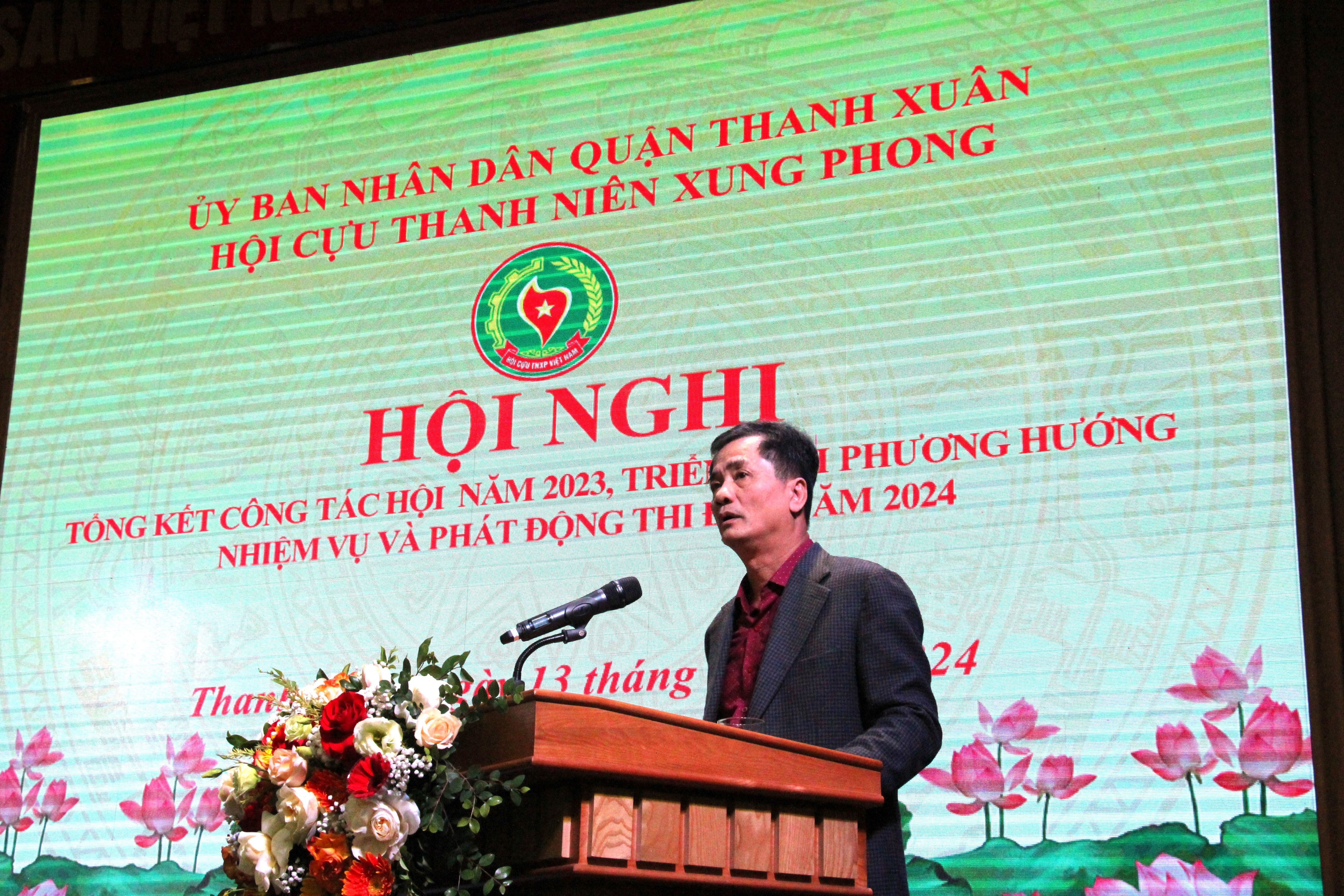 Phát biểu tại Hội nghị, đồng chí Nguyễn Văn Đính – Chủ tịch Hội Cựu Thanh niên xung phong Thành phố Hà Nội đánh giá cao, ghi nhận những thành tích đạt được năm 2023 của Hội cựu TNXP quận Thanh Xuân. Đồng thời đề nghị Hội triển khai thực hiện tốt 8 nhiệm vụ năm 2024 Hội đã đề ra. Trong đó, tập trung vào các nhiệm vụ trọng tâm: Tuyên truyền, giáo dục về lịch sử, truyền thống của đất nước, chú trọng kỉ niệm 70 năm chiến thắng Điện Biên Phủ, 65 năm ngày mở Đường Trường Sơn; 74 năm ngày truyền thống lực lượng TNXP, 70 năm ngày Giải phóng Thủ Đô, tiếp tục duy trì phong trào “Tiết kiệm nuôi lợn nhựa béo” đóng góp tích cực vào đợt thi đua đặc biệt xây dựng 70 nhà tình nghĩa cho hội viên có hoàn cảnh khó khăn toàn thành phố do Thành hội phát động. Năm 2024 là năm bản lề thực hiện nghị quyết đại hội nhiệm kỳ IV của Hội phường và Quận, Hội cần tập trung chuẩn bị tốt những nội dung cần thiết chuẩn bị cho đại Hội lần thứ V, nhiệm kỳ 2025-2030 vào năm 2025.