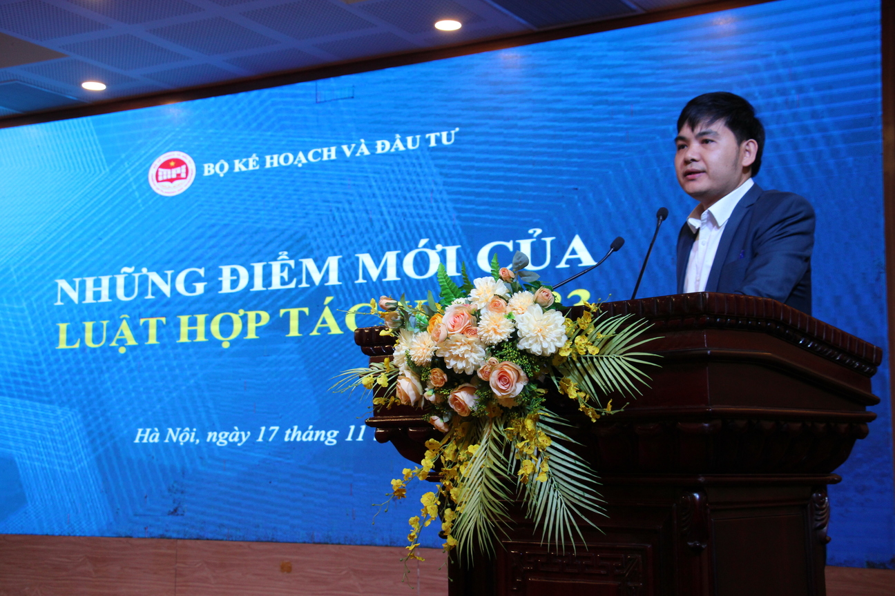 Th.s Hoàng Văn Định - Cục Kinh tế, Bộ Kế hoạch và Đầu phát biểu tham luận tại tại Hội nghị