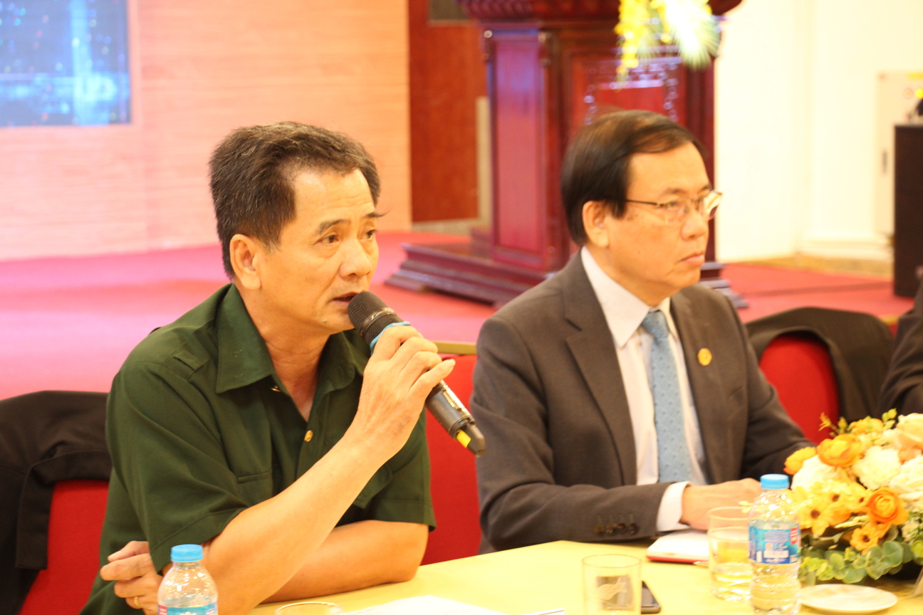 ông Lê Hồng Thụy - Chủ tịch Hội Cựu TNXP quận Thanh Xuân đóng góp ý kiến tại Hội nghị