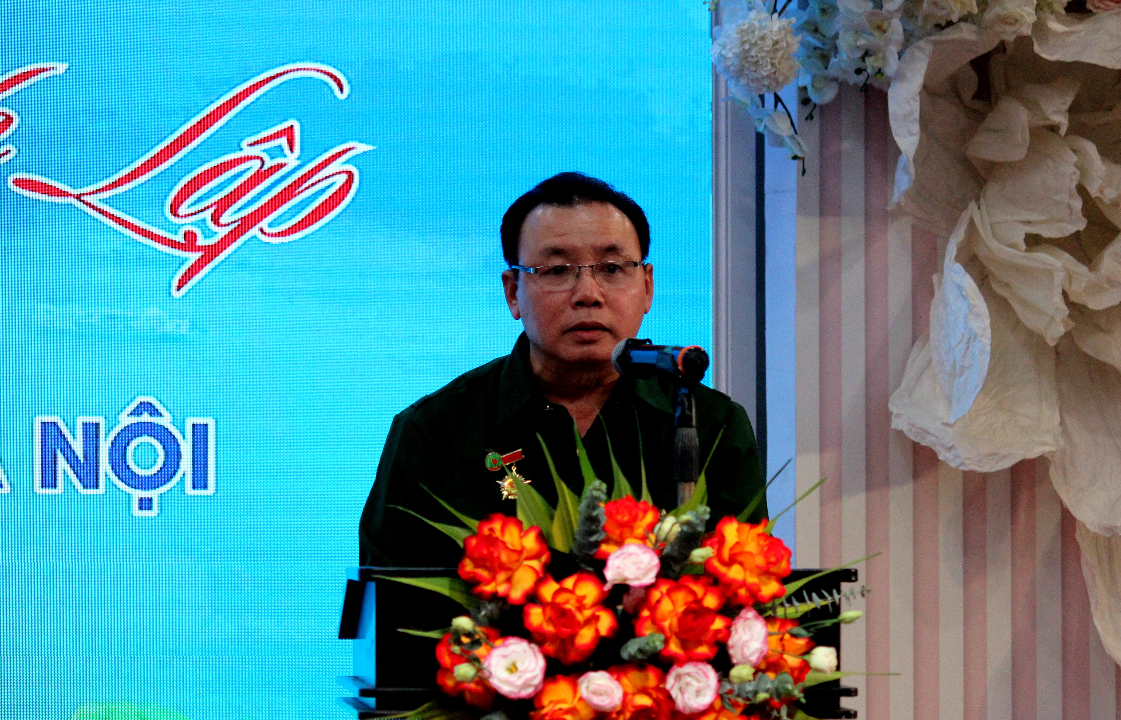 Ông Phan Đình Long - Trưởng ban liên lạc Cựu TNXP xí nghiệp than thanh niên Hà Nội trình bày diễn văn kỷ niệm