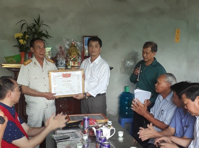 Đồng chí Nguyễn Thị Tuyến, thay mặt Thường trực Huyện hội Ba Vì và đồng chí Đặng Văn Minh đại diện Ban vận động xây dựng nhà tình nghĩa trao Bằng ghi nhận “Tấm lòng vàng” đối với Công ty TNHH và DV xây dựng Đức Chiến, Công ty TNHH thương mại Tuấn Hồng Phú Thọ và gia đình ông Nguyễn Văn Quyết, Tổ dân phố số 22, phường Kiến Hưng, Hà Đông, tp Hà Nội.