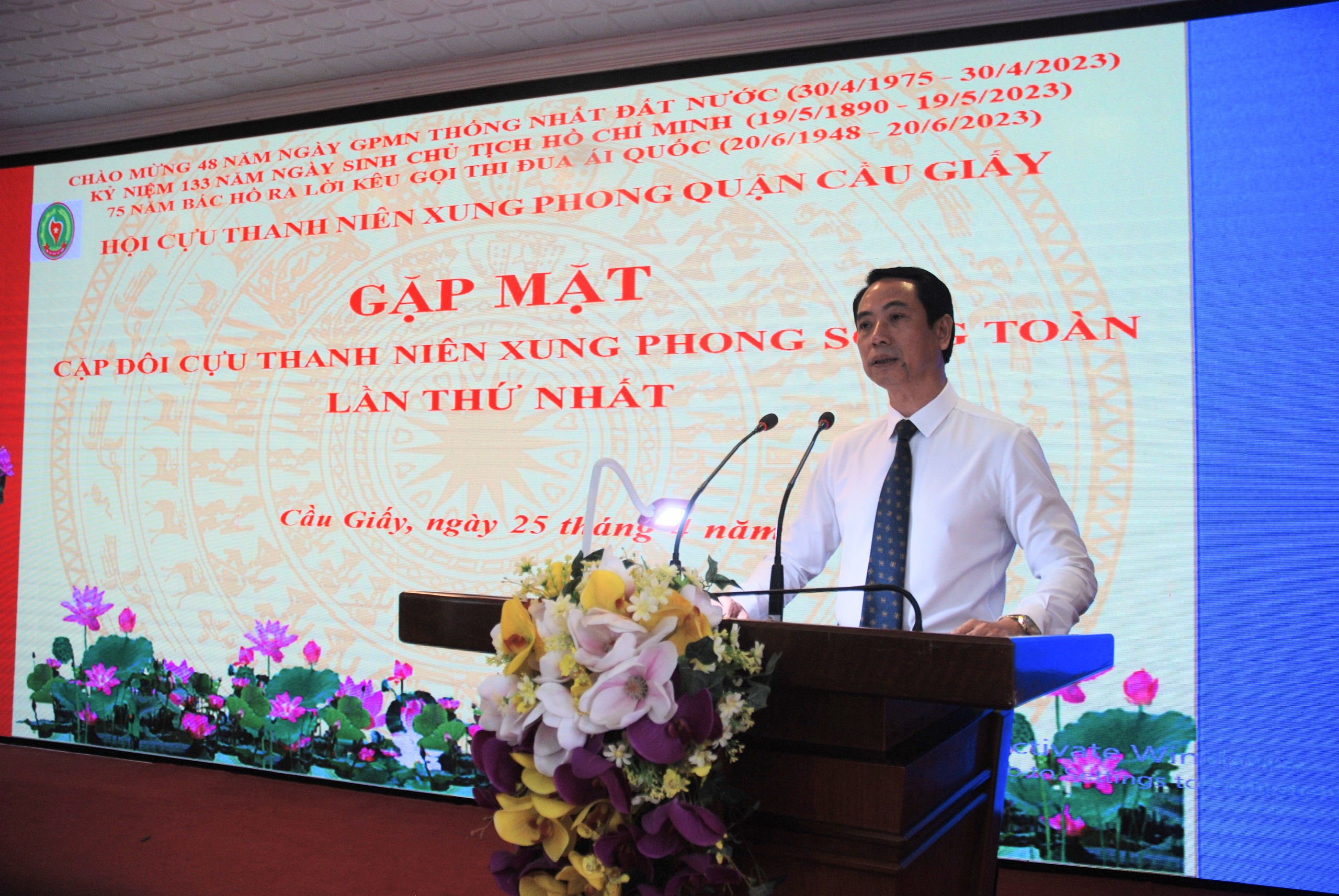 Đồng chí Phó bí thư thường trực Quận ủy, Chủ tịch HĐND Quận Cầu Giấy Nguyễn Văn Chiến đã phát biểu đánh giá cao và trân trọng sáng kiến của Hội cựu TNXP Quận tổ chức buổi gặp mặt các cặp đôi cựu TNXP song toàn lần thứ nhất. Đồng chí ghi nhận những cống hiến tuổi thanh xuân của cho sự nghiệp cách mạng chống ngoại xâm dành độc lập cho dân tộc, thống nhất Tổ quốc của các Cựu TNXP. Về với đời thường các cựu TNXP đã gương mẫu, tham gia tích cực các phong trào thi đua yêu nước, xây dựng Hội ngày càng vững mạnh, góp phần xây dựng quê hương. Đồng chí mong rằng, các cặp đôi cựu TNXP nói riêng và cựu TNXP nói chung tiếp tục phát huy phẩm chất tốt đẹp của người lính TNXP, tham gia xây dựng quận Cầu Giấy ngày càng giàu đẹp văn minh và Hội sẽ tiếp tục có các buổi gặp mặt tràn đầy tình cảm và ý nghĩa như thế này.