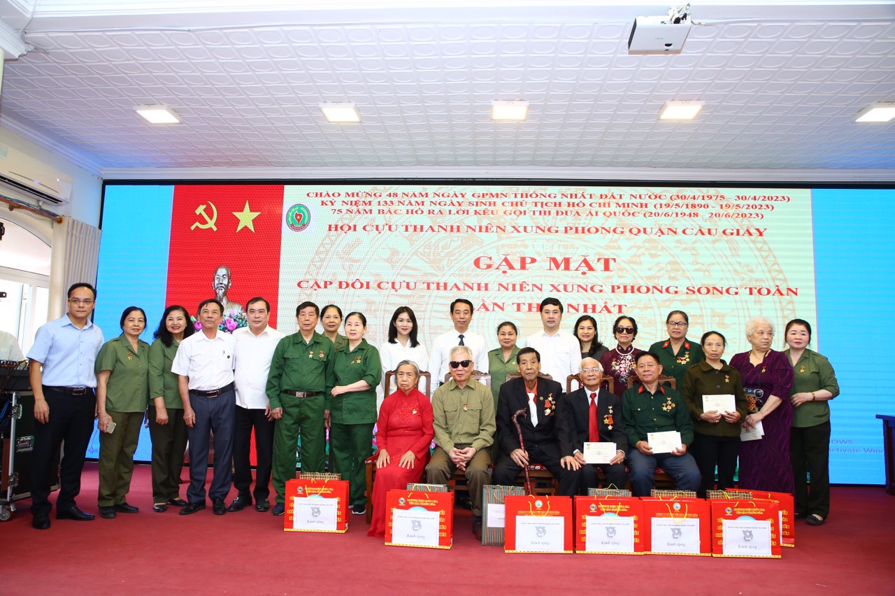 Phát biểu tại buổi gặp mặt, Chủ tịch Hội Cựu TNXP quận Cầu Giấy Lê Thị Hồi cho biết: 43 cặp đôi Cựu TNXP song toàn có hoàn cảnh khác nhau, có thể người cùng quê hay khác quê, nhưng tình yêu đôi lứa nảy nở trong khói bom, gắn với tình yêu Tổ quốc non sông, họ được tổ chức TNXP, pháp luật thừa nhận. Họ đã nên vợ nên chồng trong khó khăn gian khổ, trong sự hy sinh thầm lặng để góp phần vào công cuộc kháng chiến, kiến quốc, xây dựng và bảo vệ Tổ quốc. Có những cặp sau khi hoàn thành nhiệm vụ TNXP mới cưới nhau; có những cặp, họ được tổ chức thành hôn ngay trong đơn vị TNXP hoặc nghỉ phép về tổ chức đám cưới rồi lại lên đơn vị để tiếp tục làm nhiệm vụ; có những cặp, vợ hoặc chồng đi học, đi công tác xa nhà để con cái, cha mẹ cho người ở lại chăm sóc,.. Các anh các chị đã cống hiến trọn đời mình, góp phần xây dựng đất nước, quê hương ngày càng giàu đẹp phồn vinh. Giờ đây, tuy ở cái tuổi trên 70, 80 đầy khó khăn thách thức về sức khỏe, song các anh các chị vẫn khát khao cống hiến, vẫn luôn nêu cao phẩm chất của TNXP “ Tuổi trẻ xông pha, về già mẫu mực” thực hiện thi đua yêu nước như lời Bác Hồ kêu gọi toàn dân: “Thi đua là yêu nước, Yêu nước thì phải Thi đua”. Nếu ví dân tộc ta như một rừng hoa đẹp thì các anh các chị là những bông hoa tươi thắm, tỏa ngát hương đời