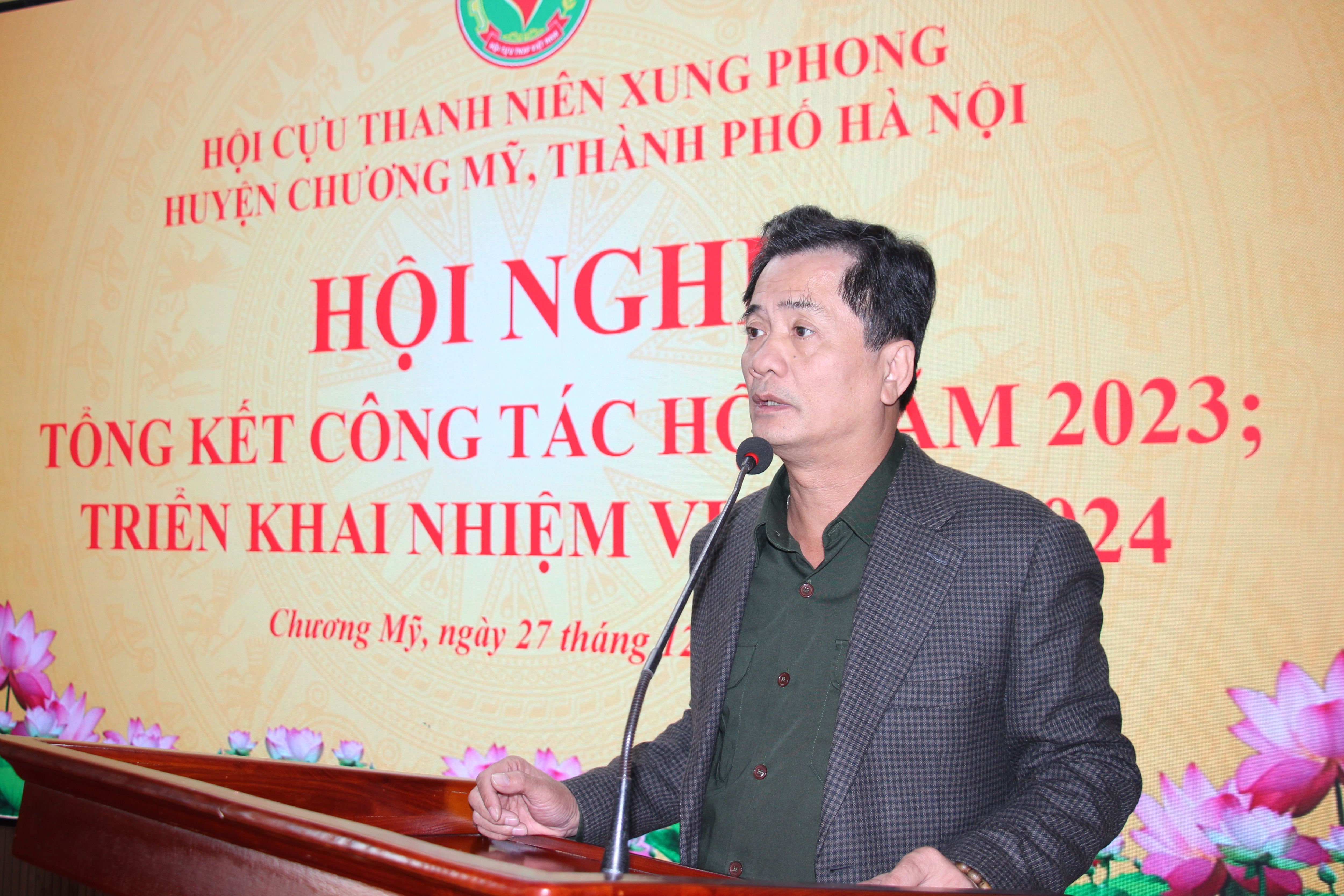 Phát biểu chỉ đạo tại hội nghị, Chủ tịch Hội cựu TNXP Thành phố Hà Nội Nguyễn Văn Đính đã chia sẻ với những khó khăn của Hội Cựu TNXP huyện Chương Mỹ. Đồng thời đề nghị hội nâng cao tinh thần đoàn kết, giúp đỡ hội viên phát triển kinh tế, nhất là mô hình kinh tế HTX của Hội cựu thanh niên xung phong, giúp đỡ hội viên khó khăn…