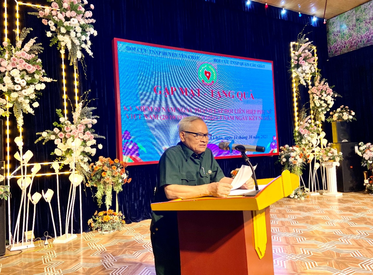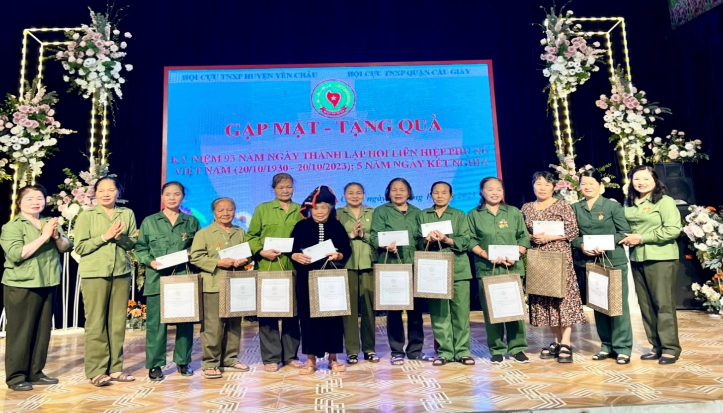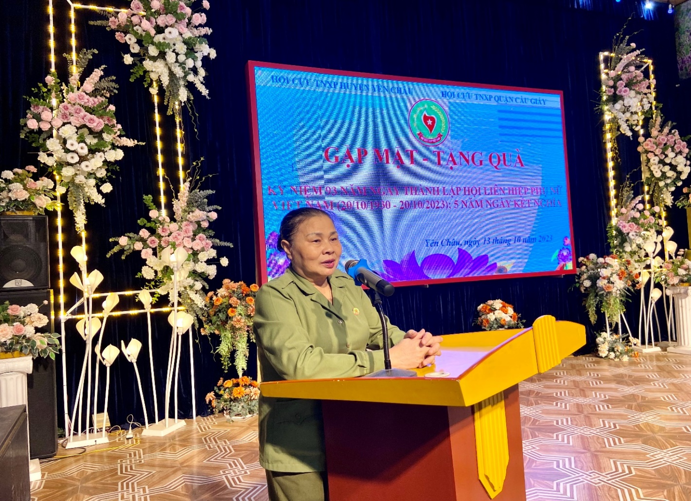 Tại buổi Giao lưu- Gặp mặt, Đ/c Chủ tịch Hồi đã phát biểu chào mừng kỷ niệm 93 năm ngày thành lập HLHPN VN, chúc chị em hai Hội (với số lượng chiếm 2/3 tổng số hội viên) phát huy phẩm chất người lính TNXP giữa đời thường, phát huy phẩm chất tốt đẹp của người phụ nữ Việt Nam, nêu gương sáng sống vui khỏe có ích trong gia đình và xã hội. Đ/c chủ tịch Lê Thị Hồi đã thay mặt toàn thể cán bộ hội viên Hội cựu TNXP Cầu Giấy và Đoàn trao tặng 10 suất quà mỗi suất 500.000 đồng của hội viên cựu TNXP và 10 túi quà hiện vật của Hội LH Phụ nữ quận Cầu Giấy cho 10 nữ cựu TNXP Yên Châu có hoàn cảnh đặc biệt khó khăn.