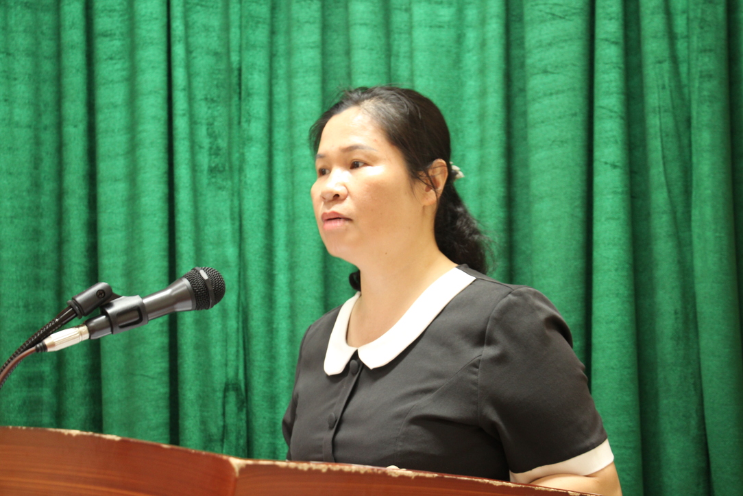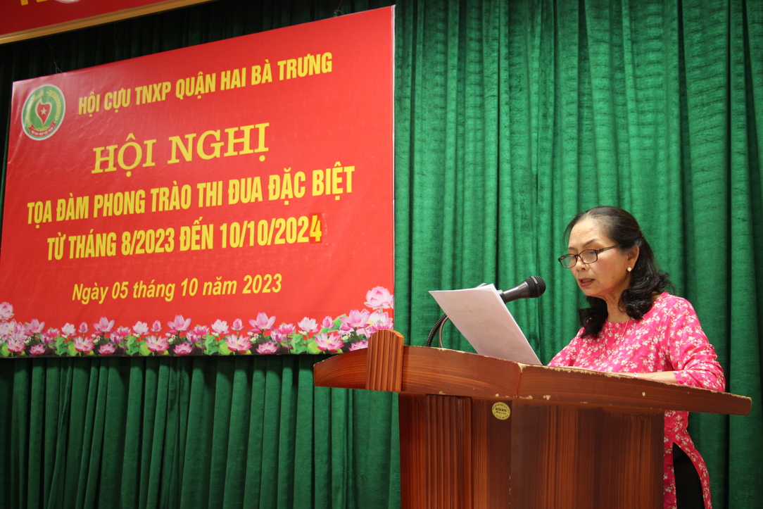 Bà Hoàng Thị Thới – Chủ tịch Hội cựu TNXP quận Hai Bà Trưng đọc báo cáo Hội nghị