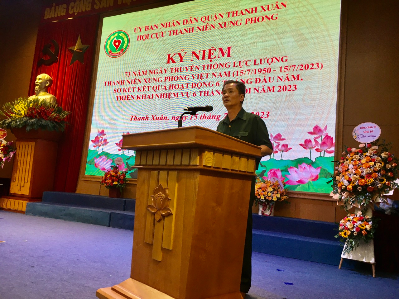Sau khi nghe đồng chí Lê Hồng Thuỵ, Chủ tịch Hội Cựu TNXP quận Thanh Xuân đọc diễn văn Kỷ niệm 73 năm ngày truyền thống của lực lượng TNXP Việt Nam, báo cáo sơ kết 6 tháng đầu năm, triển khai nhiệm vụ 6 tháng cuối năm 2023 và phát động hưởng ứng đợt Thi đua đặc biệt của Thành Hội, đồng chí Nguyễn Văn Đính và đồng chí Nguyễn Minh Tiến đã phát biểu động viên Hội nghị, chỉ đạo, giao nhiệm vụ, đồng thời cũng chỉ ra hướng đi, các biện pháp giải quyết các vướng mắc, tạo thuận lợi cho việc hoàn thành nhiệm vụ có hiệu quả cao nhất.