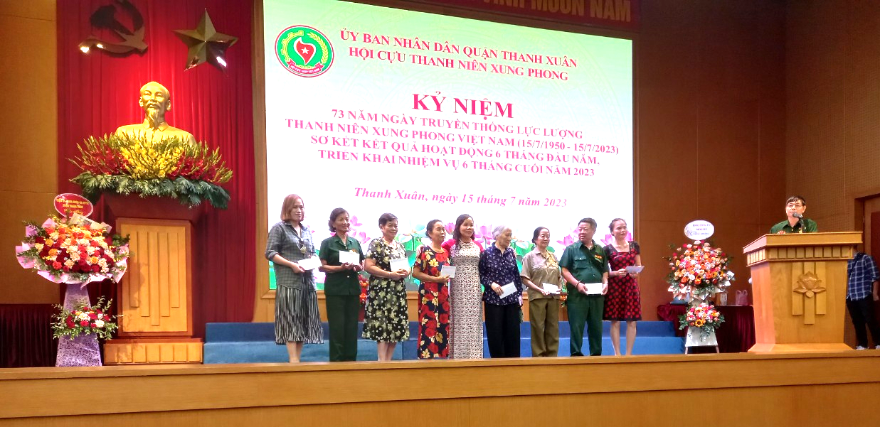Cũng tại hội nghị, hội nghị đã trao 60 suất quà có giá trị 500000 đ/ suất của Hội Chữ thập đỏ, Đoàn TNCS Hồ chí Minh Quận cho 60 Hội viên không lương, có khó khăn về kinh tế. Hội Dacamdioxin trao 8 suất quà cho 8 Hội viên bị nhiễm chất độc Dacamdioxin. Hội Cựu TNXP Quận trao 11 suất quà cho 11 Cán bộ Hội Phường có hoàn cảnh khó khăn nhưng vẫn nhiệt tình tham gia công tác hội và đạt các thành tích suất sắc. Ngoài ra Hội nghị cũng trao 8 Huy hiệu Cựu TNXP nêu gương sáng làm theo lời Bác. Khen thưởng 5 tập thể và 11 cá nhân có thành tích xuất sắc trong 6 tháng đầu năm 2023.