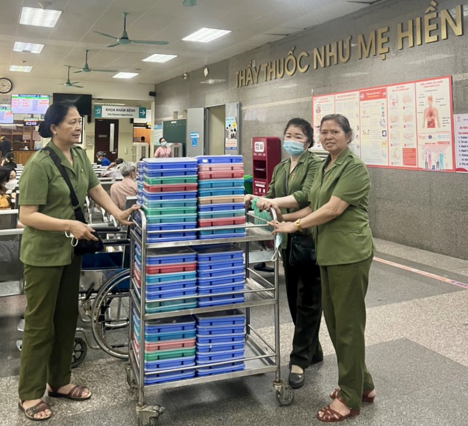 Chị Hải tham gia trao “ Bữa cơm nhân ái” và phối hợp với Đoàn TN trao quà cho “Mẹ Việt