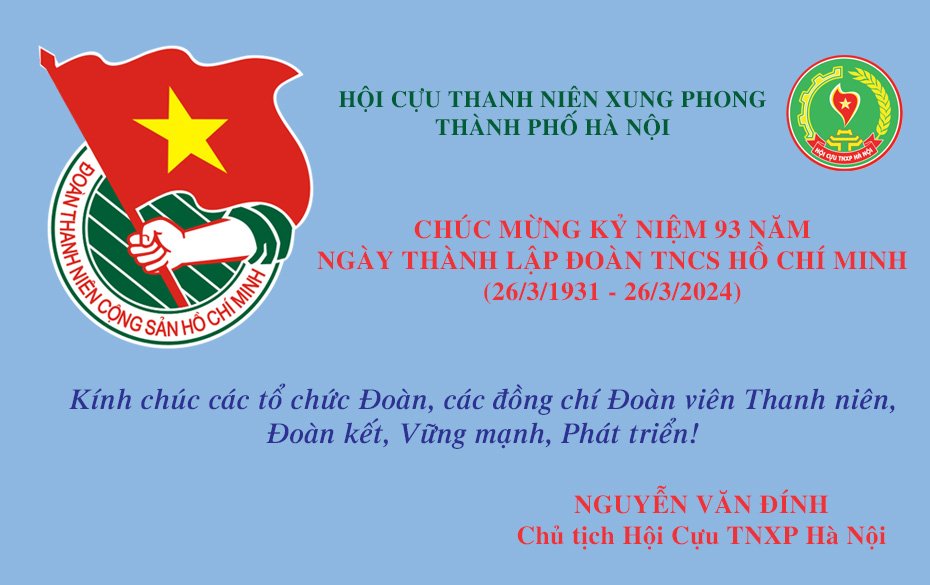 THƯ CHÚC MỪNG KỈ NIỆM 93 NĂM THÀNH LẬP ĐOÀN THANH NIÊN CỘNG SẢN HỒ CHÍ MINH
