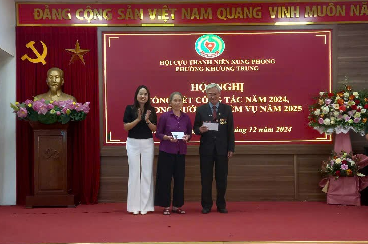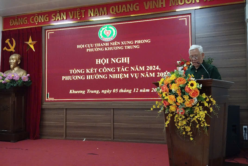 Đ/c Lê Hồng Thụy đã nêu bật những thành tích xuất sắc của Hội phường Khương Trung năm 2024 cùng những con số thật ấn tượng về “Nghĩa tình đồng đội”, “Hỗ trợ Đồng bào bị bão lũ bão báo số 3 - Yagi gây ra - 8,75 triệu đồng”, ứng ứng phong trào “Thi đua đặc biệt” của Thành Hội: 7,30 triệu đồng, “Bán đón tiền góp vào tình tình Đồng đội: 3,8 triệu đồng ”… Tất cả Tất cả các yếu tố khẳng định: Hội Cựu TNXP phường Khương Trung đã dẫn đầu phong trào Thi đua của Quận Hội trong năm 2024, Với kết quả hoạt động đó, Hội phường và cá nhân Chủ động Lê Đình Tự đã được Quận Hội đề nghị TW Hội Cựu TNXP Việt Nam khen thưởng. Sau 1h 30 phút, Hội nghị kết thúc thành công tốt đẹp.
